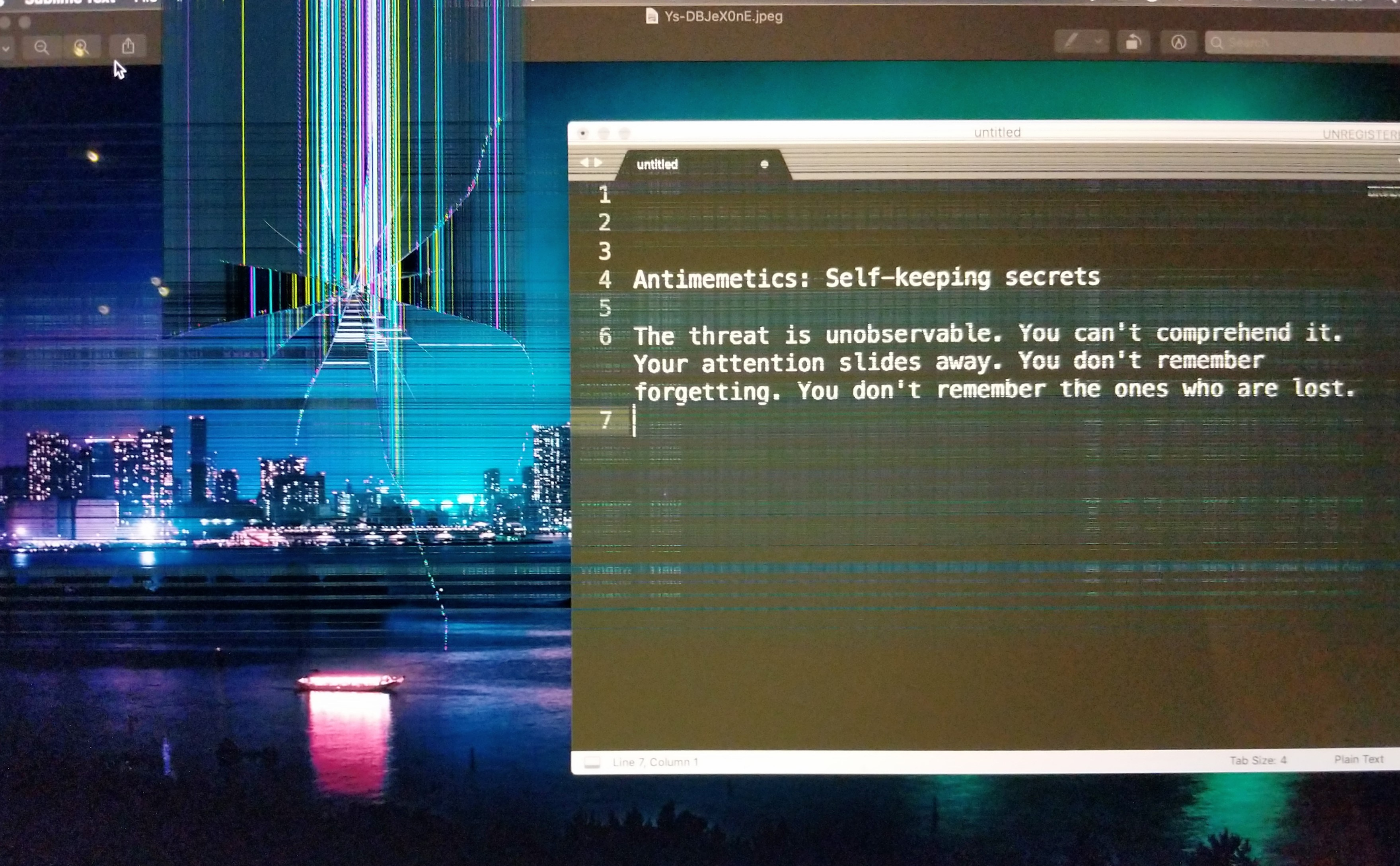 “What do you mean? This isn’t your first day. Who’s talking? I don’t see anyone. My memetic shielding software isn’t letting me see you either, this is bad news.” – Director Hutchinson